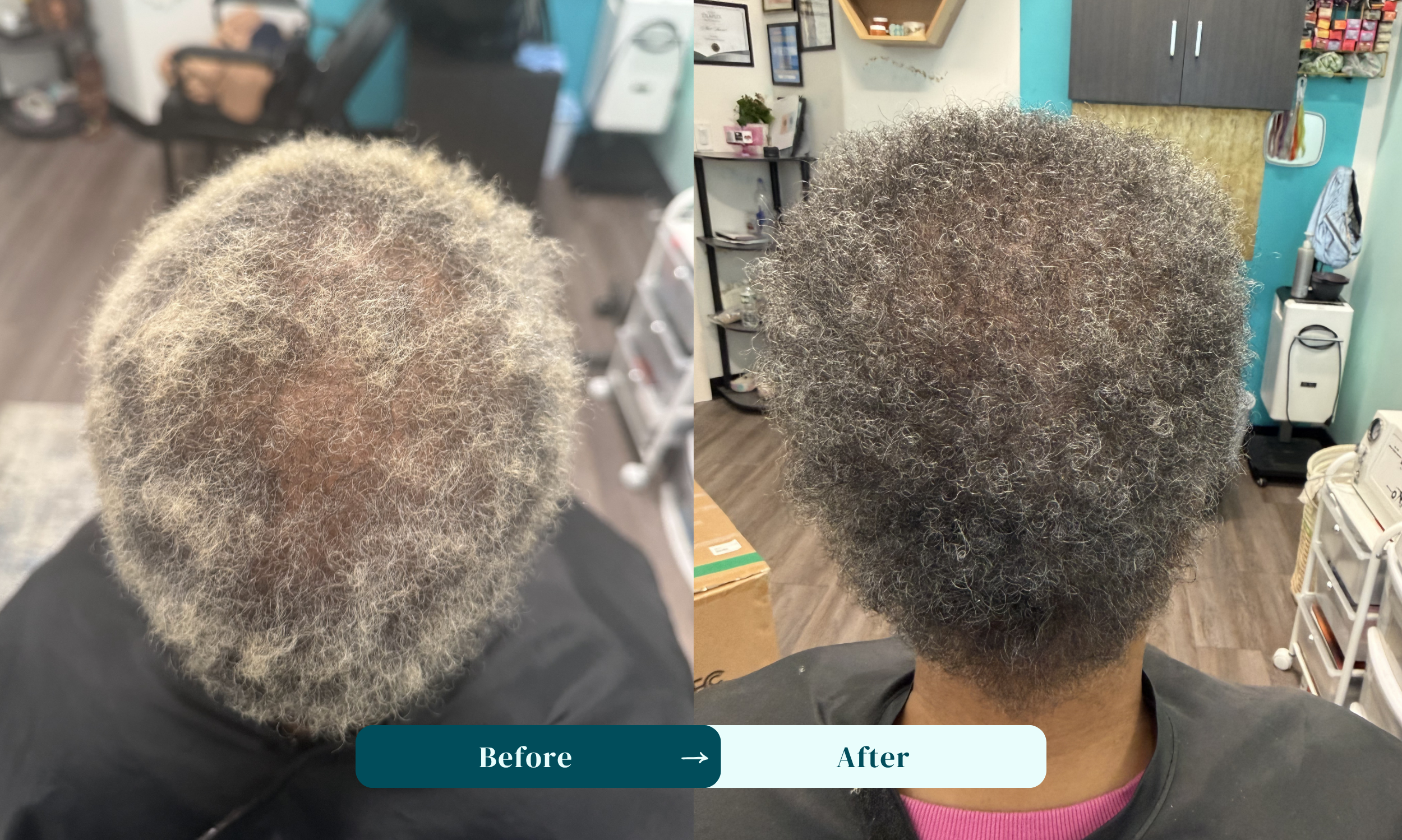 • Moet is a blessing and she is talented with hairstyling, hair care, and hair treatment. I sought her out specifically for her skills as a certified Trichologist. After years of over processing my hair, I deal with alopecia and have thinning all over. I’ve seen several Dermatologists over the years with little success in hair restoration. I had really given up hope. I decided to try Moet because a family member had success with a Trichologist. I started the process with very, very, very, low expectations. Through a treatment program that I started two months ago, at the end of July, the results have been amazing. The picture on the right is from June 2025. Nothing new between June and mid-July. The picture on the left is from 9/19/25, which is just two months from starting my treatment plan with Moet on 7/22/25. Even my Dermatologist is amazed by the results. I am so grateful!